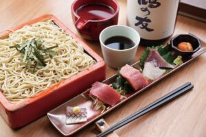 お昼は、香り高い蕎麦を使ったランチメニューをご用意。夜は、お酒に合う蕎麦前や新鮮な刺身、豊富な一品料理など、バラエティ豊かなメニューでお客様をお迎えいたします。