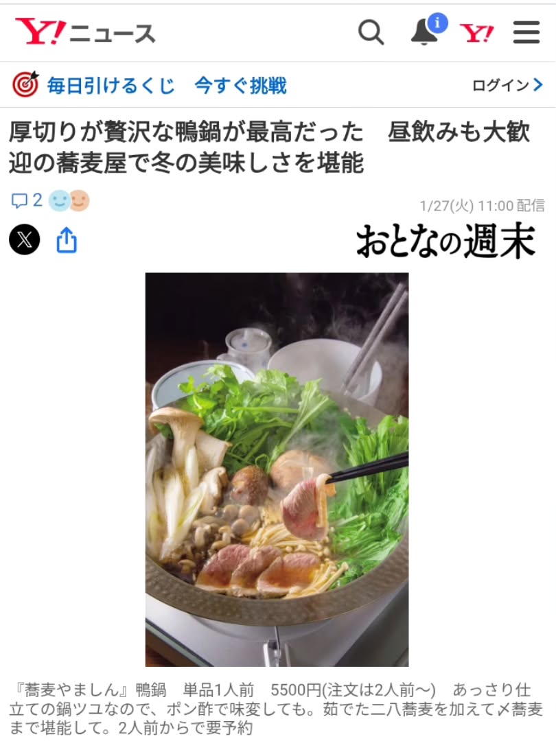 プレスリリース2026-01-25国産合鴨で『鴨南蛮そば』温まりましょ~!! 八軒通り 蕎麦やましん
