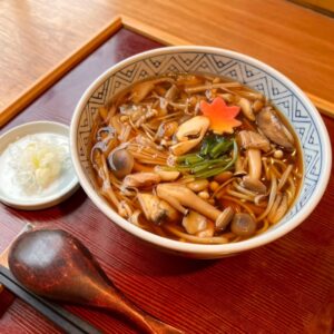 プレスリリース2025-10-27秋の季節そば【きのこ蕎麦】始まってます! えのき、しめじ、舞茸、松茸等入った秋の宝石箱!!