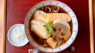 雨も止んだので【揚げ餅入り】今日のランチは決まりかなぁ!温かい『ぞうにそば』食べましょ! 八軒通り蕎麦やましん