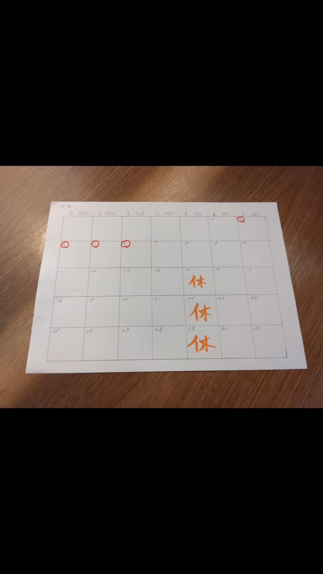 5月のお休みになります!
